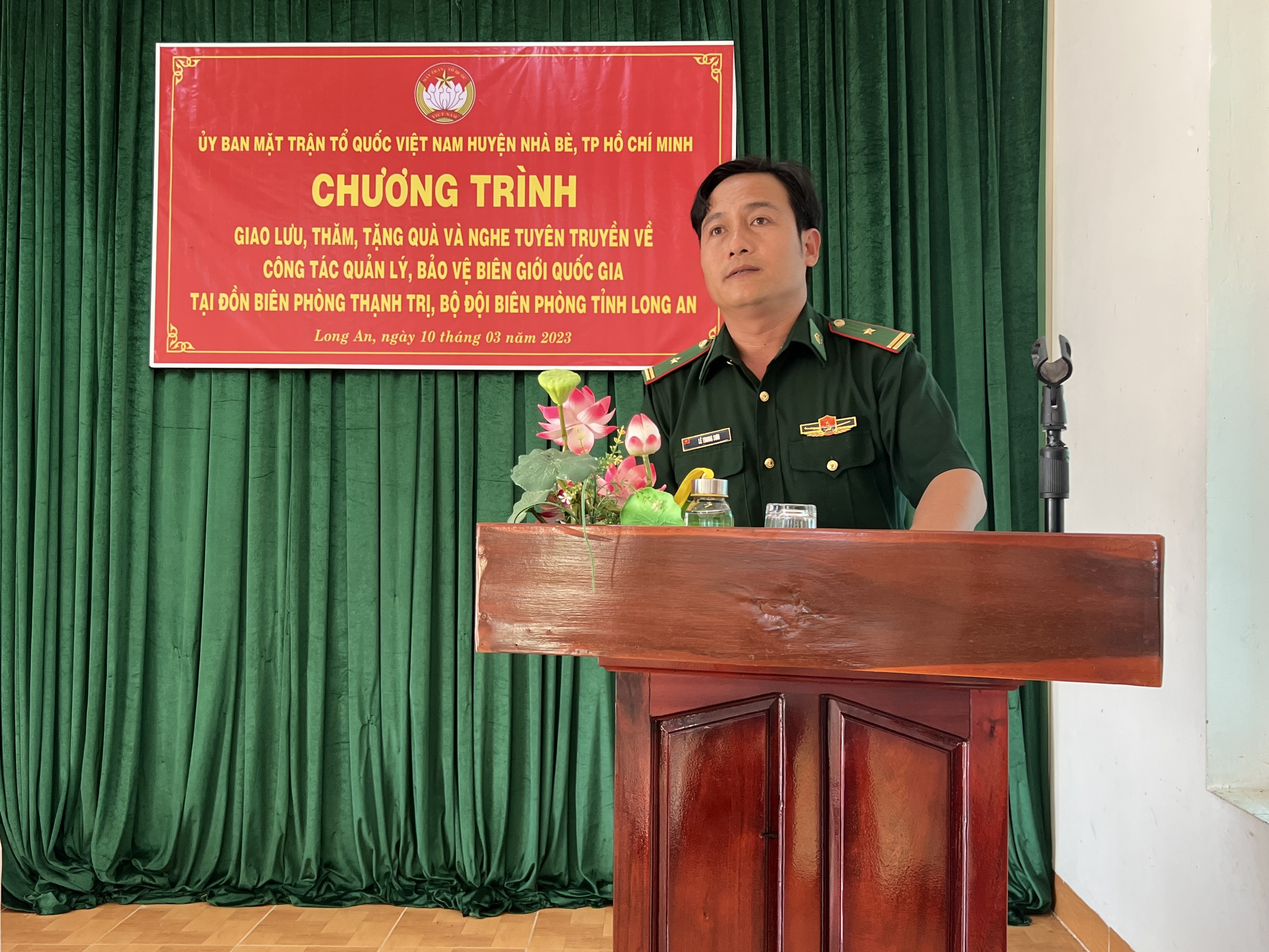 Nằm trong nội dung chương trình, Thiếu tá Lê Trung Sơn - Chính trị viên Đồn Biên phòng Thạnh Trị, đại diện đơn vị tuyên tuyền về công tác quản lý, bảo vệ biên giới quốc gia trong tình hình hiện nay.
