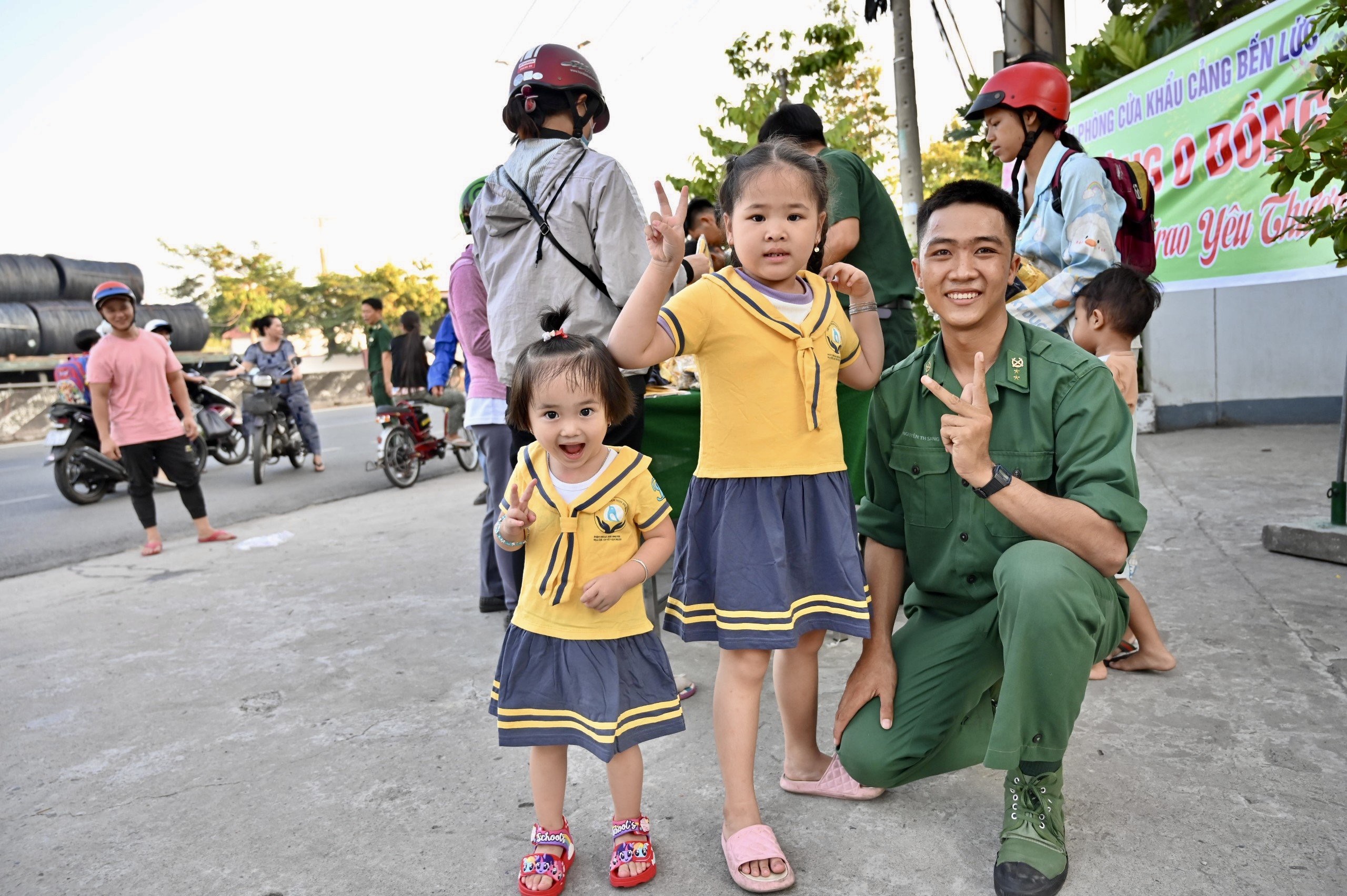 Đồn Biên phòng Cửa khẩu cảng Bến Lức Tặng quần áo cho trẻ em trên địa bàn thị trấn Bến Lức